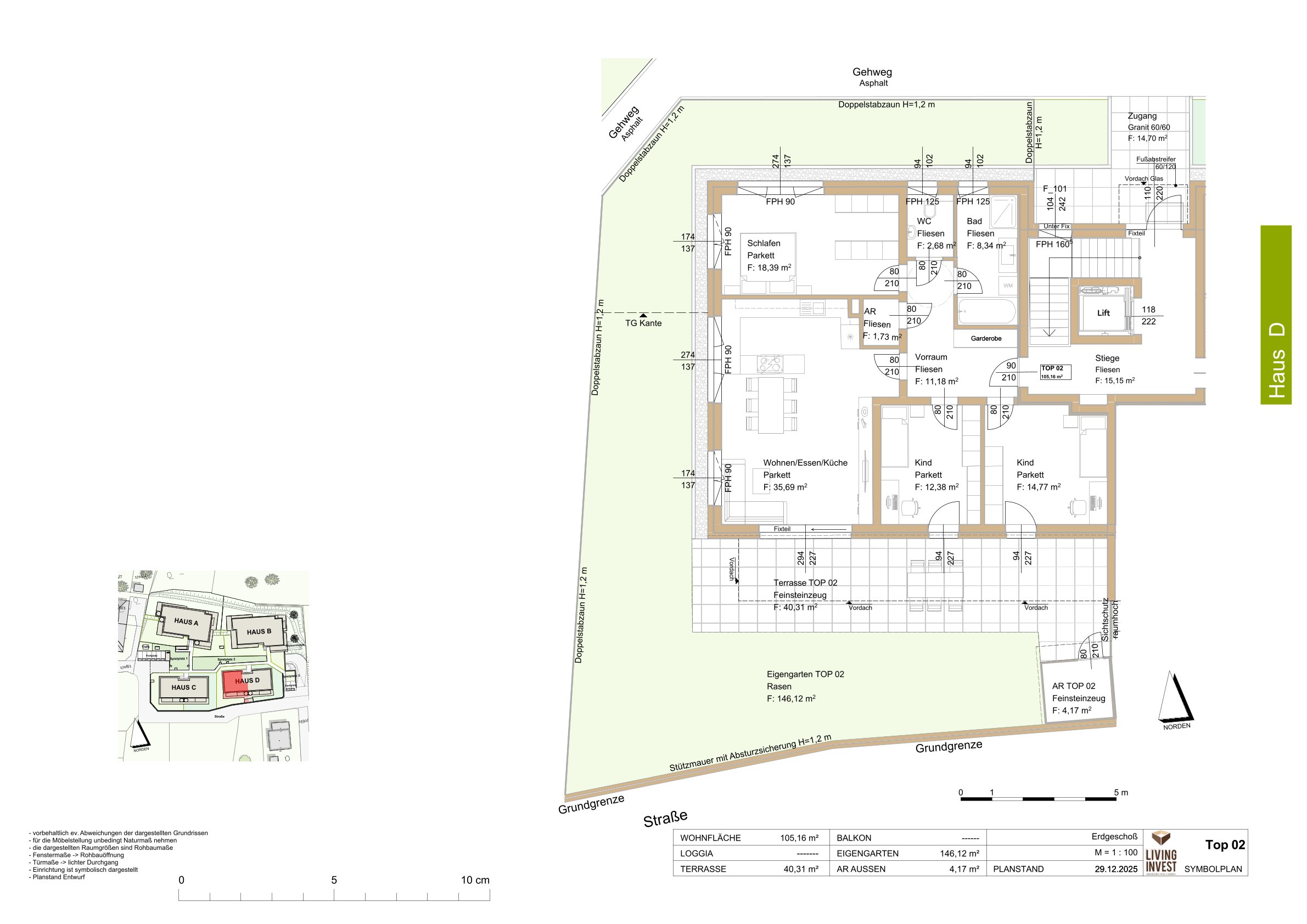 Mit einer Terrasse von über 40 m² und einem weitläufigen Eigengarten mit rund 146 m² bietet dieses TOP außergewöhnlich viel Freiraum – perfekt für alle, die großzügiges Wohnen mit einem starken Bezug ins Grüne verbinden möchten.